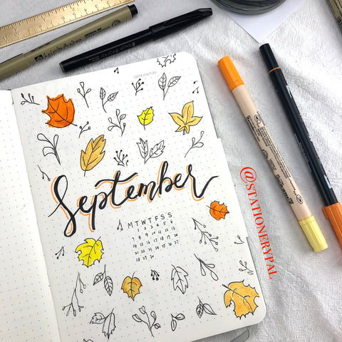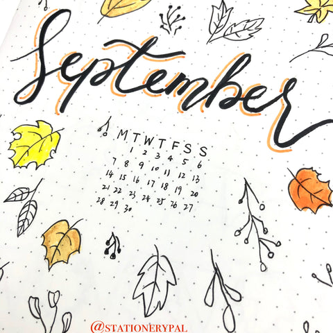 Then I used a brush pen to write the title "September", and an orange pen to shadow the left and the bottom of each letter, to make the title more obvious and three-dimensional.