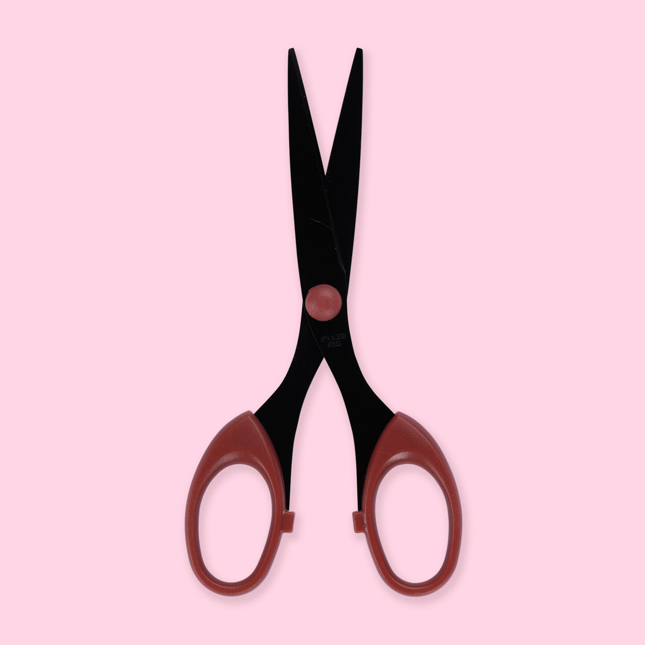 Lightweight stainless steel scissors can cut almost anything, from regular printer paper to plastic bags and cardboard boxes. Small ridges on the inside of both blades help them cut through tape without sticky buildup, as they reduce the amount of sticky material that touches the blades. These scissors also feature a fluorine coating, which prevents sticky residue from sticking to the edges and resists rust and dirt.