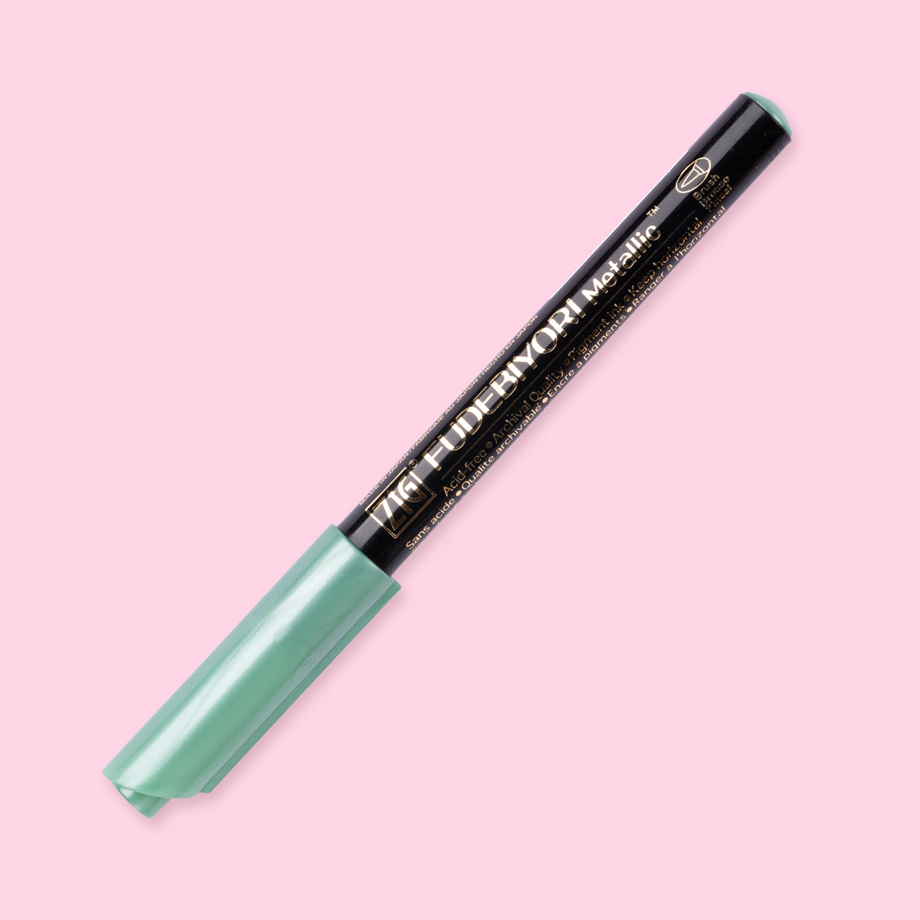 ZIG Fudebiyori Metallic pens are a water-based pigment with a semi-flexible hard brush tip allowing you to easily control strokes and lettering. Effective on dark colored papers.